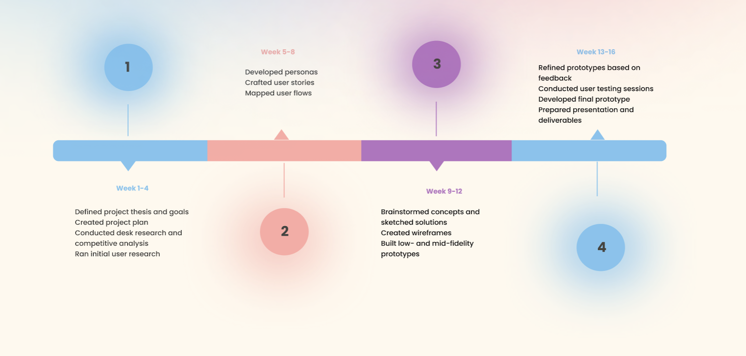 As the product designer, I designed an end-to-end product experience over the course of 16 weeks, grounding feature decisions in behavioral and emotional user insights. My responsibilities included: